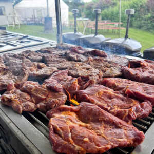 Bratwurst, Steak, Gyros, Schaschlik etc. aus eigener Schweinehaltung und Schlachtung.